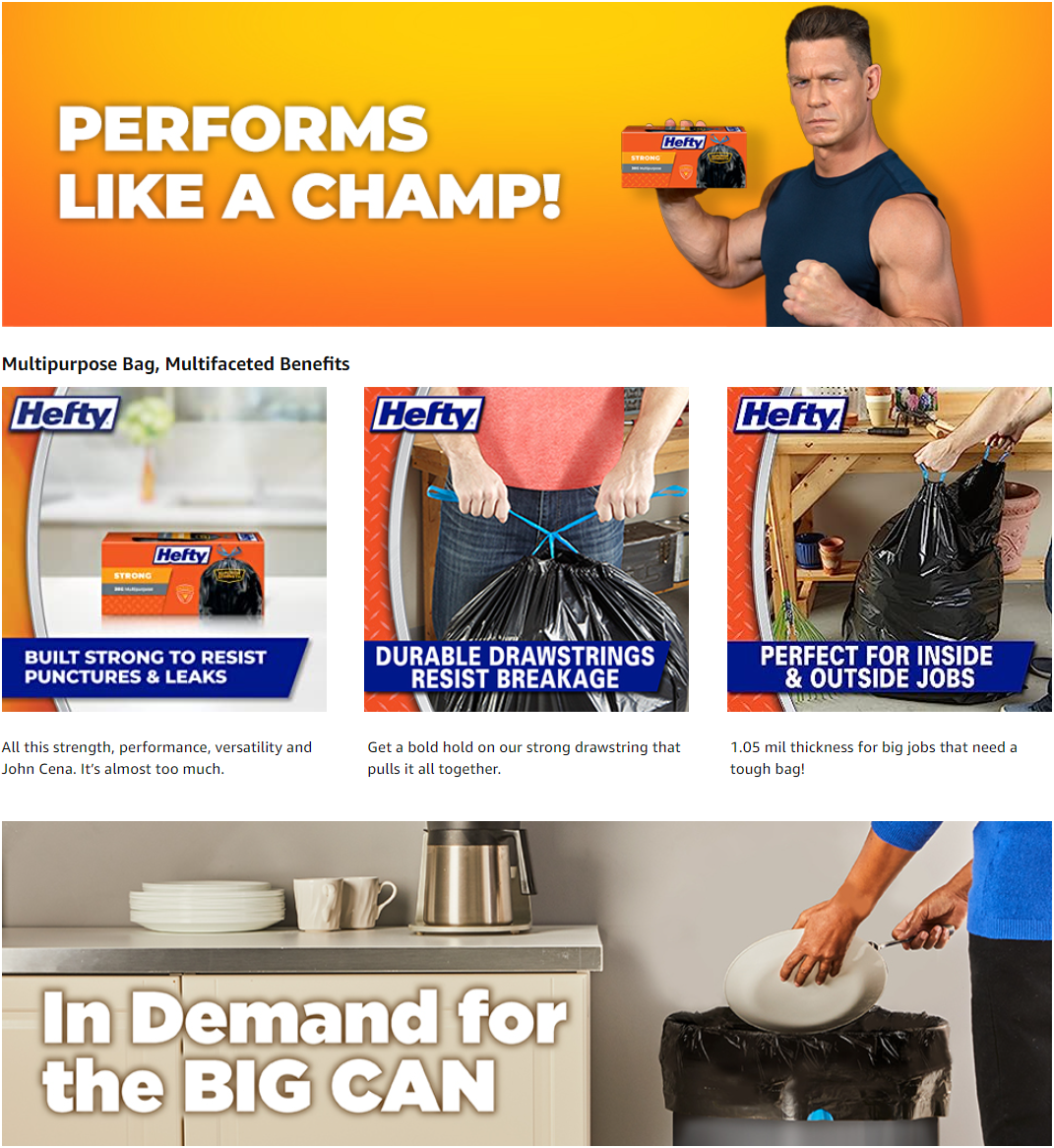 • LARGE GARBAGE BAGS—This package contains 48 Hefty Strong large, black, unscented, 33 gallon multipurpose bags